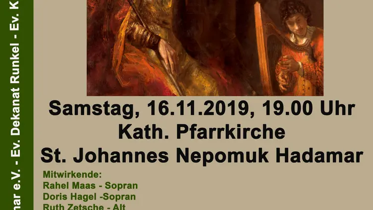 Veranstalter: Kulturvereinigung der Stadt Hadamar e.V. in Kooperation mit dem Ev. Dekanat Runkel under Ev. Kirchengemeinde Hadamar