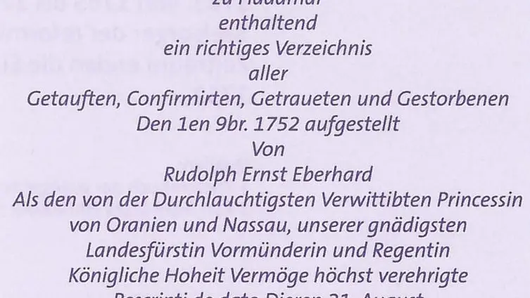 Von 21. August 1752 nun stammt das Dekret der verwitweten Prinzessin und Regentin Anne von Oranien-Nassau mit dem sie der Gemeinde einen eigenen Pfarrer verordnet.