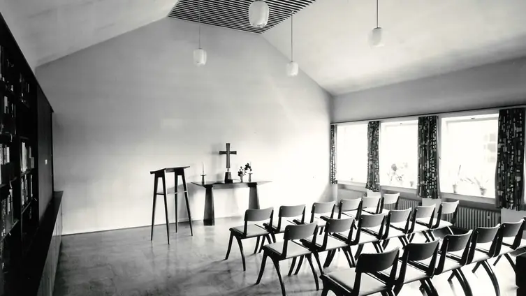 1957 zählt die Gemeinde 1800 Gemeindeglieder und das Gebäude in der Neugasse war viel zu klein geworden. Mit finanzieller Unterstützung des Gustav-Adolf-Werkes konnten in der Alten Chaussee zwei Grundstücke gekauft werden. Auf dem einen (heute Alte Chaussee 28) stand ein Gebäude, dass zum Gustav-Adolf-Schülerheim umgebaut wurde. Es hatte Platz für 12 Gymnasiasten, die aufgrund der großen Entfernung der elterlichen Wohnung von Hadamar dort wohnten, und für eine Wohnung des zweiten Pfarrers. Auf dem anderen Grundstück (heute Alte Chaussee 30) wurde ein neues Gebäude errichtet mit Pfarrwohnung, Büro und Gemeindesaal. Am 22.9.1957 wurde das Gemeindezentrum unter starker Anteilnahme der Bevölkerung mit einem Festgottesdienst in der Schlosskirche und einer großen Prozession durch Hadamar zur Alten Chaussee und einem Festakt dort eingeweiht. Mit dem Gemeindezentrum hatte die Evangelische Gemeinde endlich ausreichend Räumlichkeiten für Gruppen und Kreise und die Konfirmandenarbeit. Zeitweise wurde der Gemeindesaal auch als Gottesdienstraum verwendet.